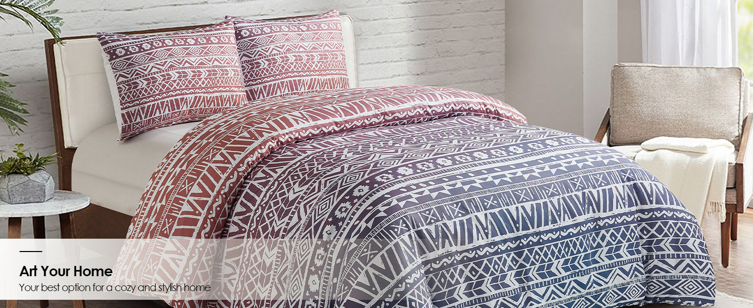 100% Cotton 3 Pieces Duvet Cover set includes 1 Duvet Cover and 2 Pillowcases