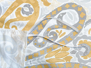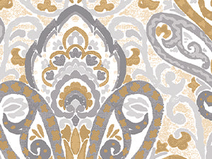 The Hand-Painted Yellow& Grey Damask patterns are reorganized by our designer , as if they were placed in a fancy paradise, giving people a sense of luxury.