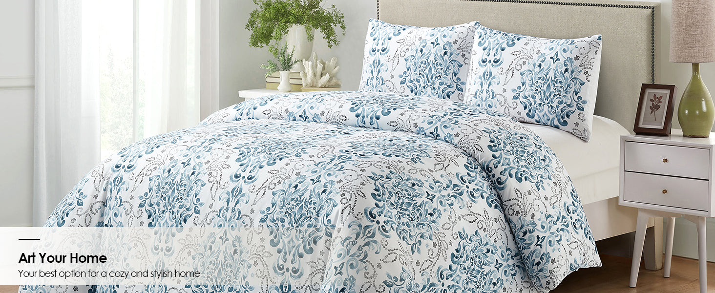 This watercolor damask effect and bright blue pattern create a Bohemian style duvet cover, which is very suitable for the bedroom decoration of unisex, Perfect match with all bedroom decorations. This bedding set will bring you fresh fun and bring fresh and chic Bohemian style to your bedroom.