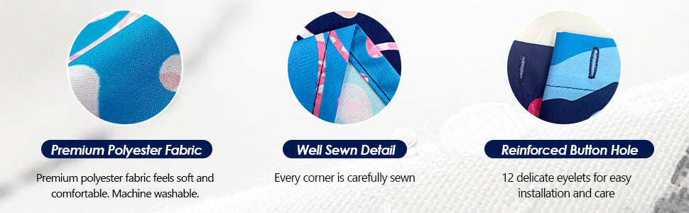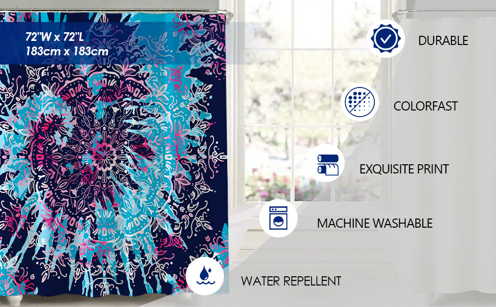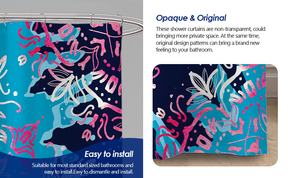 - EASY TO INSTALL FABRIC SHOWER CURTAIN--The bath curtain have reinforced 12 buttonholes work with most types of shower hooks and rings for quick and easy installation. This 72 inches by 72 inches shower curtain can be used in home,apartment,hotel,RV,dorm room,school shower,athletic club,gym,bathroom,bathroom window curtain,party backdrop.