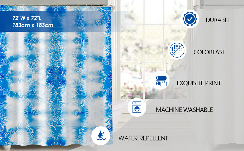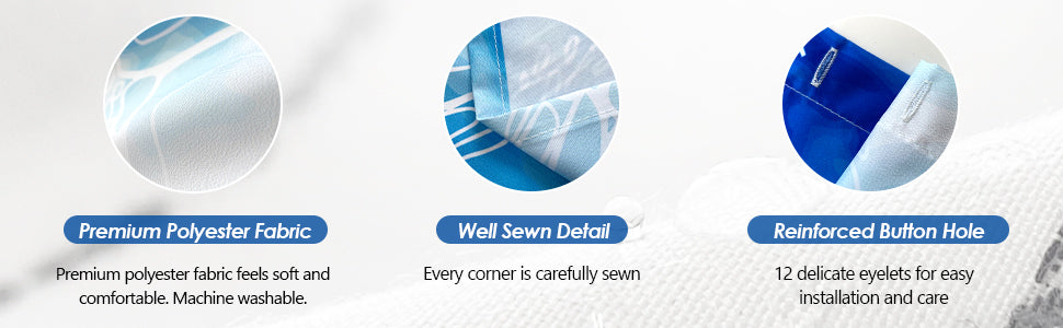 - EASY TO INSTALL FABRIC SHOWER CURTAIN--The bath curtain have reinforced 12 buttonholes work with most types of shower hooks and rings for quick and easy installation. This 72 inches by 72 inches shower curtain can be used in home,apartment,hotel,RV,dorm room,school shower,athletic club,gym,bathroom,bathroom window curtain,party backdrop.