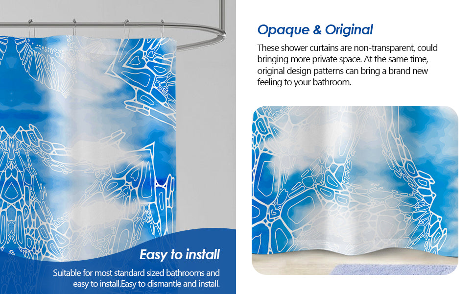 - WATERPROOF MATERIAL & KEEP PRIVACY--This waterproof shower curtain technique used new water-repellency resistant coating, drops of water fell like pearls. Dry quickly after bathing. High-quality thickened polyester fabric makes the shower curtain breathable BUT Opaque. When you share a bathroom with your family members or roommates, it can provide you a private space and protect your personal privacy.