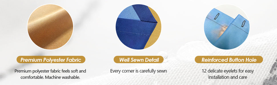 - EASY TO INSTALL FABRIC SHOWER CURTAIN--The bath curtain have reinforced 12 buttonholes work with most types of shower hooks and rings for quick and easy installation. This 72 inches by 72 inches shower curtain can be used in home,apartment,hotel,RV,dorm room,school shower,athletic club,gym,bathroom,bathroom window curtain,party backdrop.