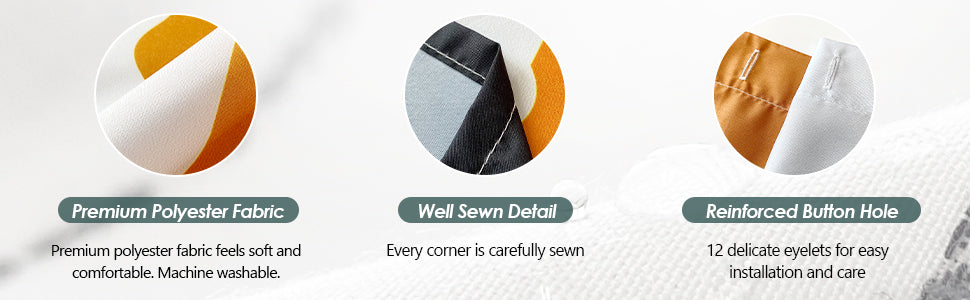 - EASY TO INSTALL FABRIC SHOWER CURTAIN--The bath curtain have reinforced 12 buttonholes work with most types of shower hooks and rings for quick and easy installation. This 72 inches by 72 inches shower curtain can be used in home,apartment,hotel,RV,dorm room,school shower,athletic club,gym,bathroom,bathroom window curtain,party backdrop.